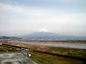 | 今週は引継ぎのため東京出張でした。週末は「第12回の横浜駅伝」の6区で5kを走って来ました。駅伝は別のサイトに譲るとして、出張中に撮った2コマを紹介です。 1つ目は東京へ向かう新幹線が、富士市を通過した時の車窓からの富士山です。新幹線からは結構防音壁がありなかなか写真にはならないんですが、、、、。丁度うまい具合に、橋の袂の切れ間からパチリ。 |
