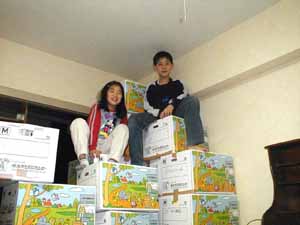 | 大阪、高槻について2日目です。4月3日に松戸で荷物を積み込んで、そのまま車で夜中到着しました。ふぇ-つかれる。。道中 少し悪寒がしたので、SAで「ユンケル」を購入、偏頭痛用の常備薬「ナロン」で何とかやり過ごしました。以前京都の「山崎」に住んでいたので、土地感があるはず、、、だったので、京都南ICで降りたは良いのですが、迷子、迷子、、、。土地感は18年も経つと無くなるってて事ね。カーナビが有ったらなーー。ガソリンスタンドで道を聞いてなんとか到着でした。。(-_-メ) 荷物は翌朝9時到着なので、新居では「寝袋」です。ペンダント電気も無いので、トイレ、廊下電気をつけての活動です。キャンプ用のコッフェル、ガスはダンボールに入れちゃったし、なー-んにも無い。山のキャンプよりしんどいなー。裏のコンビニでパンを買って、台所の暗いフローリングで車座で食す。すごい夜中なのであとはどんどん寝るだけだ!これはキャンプの方が快適かもね。翌朝はすごい筋肉痛。断熱マット無しの「寝袋」も結構しんどいもんだなー。 ダンボールの山との格闘。ちょっと風邪気味(?)で「発熱」です。バファリンとナロンを交互に飲んで開封作業です。 あーしんど。PCはうまくつながりました。松戸でダイヤルアップの設定をしておいたので、「デフォルト」を変えるだけです。OH!!電話のケーブルが短いのーーー。こりゃレイアウト変更。とりあえず仮設レイアウトで運用じゃワイ! NTTのジャック、、TA、、、PC、、プリンター、、CRT,KEYボードが、なんだか「一列縦隊」で並んでます。部屋を横断する格好で運用中。。 ■下の写真は松戸の最終日。天井までのダンボールに登って遊ぶ長男(冬樹)長女(咲季)です。 |