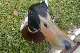 | 日本庭園風ゾーンにいた「かも」。デジカメを向けると寄ってきて、くちばしを「パカパカ」させてカメラを食べそうになったよ!被写界深度を超えるくらい寄ってきたところを撮ったので「ピンぼけ」です。大阪のオバちゃんみたいにやたら「なれなれしい」関西系のカルガモです。 あーこれカルガモですよね、、? (^^;;; |