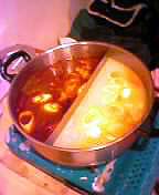 麻辣スープ、白湯スープの火鍋(ほうこう)です。本場四川の本格的な火鍋ですスタイル、、。さて、、。 初体験す!。>わたし。