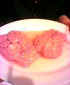 お肉は「ラム」を選びました。普通は牛かラムらしいです。それに白菜、餃子、豆腐皮(湯葉かな〜〜。)、羊血、猪脳、その他なんだか不明物質を水炊風に入れて、出汁につけていただきます。この出汁に香草(チャンツアイ)のみじん切りをたっぷり入れるとGOODです。