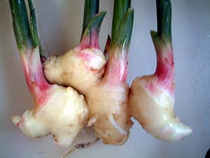生姜は「種生姜」から、どんどん発芽してます。谷中生姜よりちょっと大ぶりかな〜、。みそ醤油だと新鮮です〜。