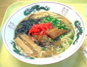 まずはお仕事先の空港ロビー内で「ラフティーらーめん」です。焼き豚の代わりに沖縄名物のラフティーが入っ