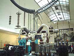 電気実験室とか発電所とか大電力とか稲妻とか、、。アトムとかフランケンシュタインが出てきそうな、、。 |