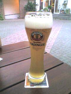 (右)中庭のレストランでオーダーしたヴァイスビール。ERDIGERやし!!ひゅ〜〜!
