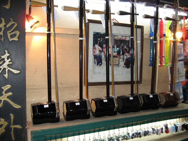 1500円〜3000円程度のお土産二胡。奥に色鮮やかな「たて笛」があったりするので音楽全般?(笑)