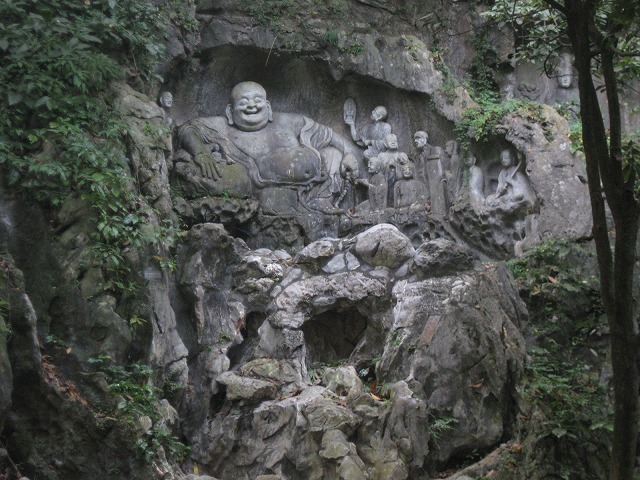 岩山にたくさん彫られた彫像。
