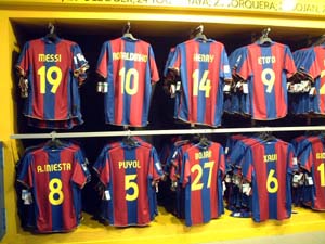 FCバロセロナサッカー場。オフィシャルショップ メッシ、ロナウジーニョなどなど多数大混雑。