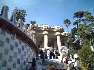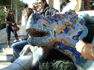 その後市内に戻って有名なグエル公園へ、。徹底的にガウディーです。例のカメレオンみたいなワニみたいなんは人気ですわ。