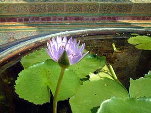 お寺の中の水盤に「蓮」が咲いています。これはなかなかえ〜ですね。このきらびやかモードには良く合います。