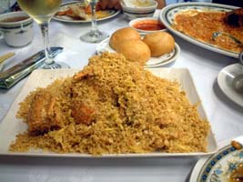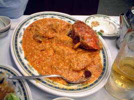 | ここからは翌日です。シンガのタクシーもバンコク同様安いので、30分ぶっ飛ばしてイーストエリアのシーフード コートに「蟹」勝負です。観光客がひどく多いですし、何故かスーツケース持った旅行客も多いです。 空港から直接乗りつけでしょうか?! 海からの風が適度に吹いてきてなんか涼しくてえ〜感じのところでした。 メニューはなんだか良くわからなかったので、今夜はコース作戦です。結構満足の「超まいう〜〜!」。 |