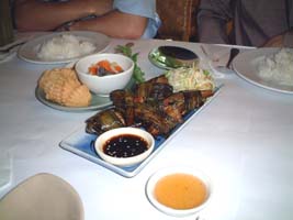 ![]() カイ・ホー・バイツーイ 鶏肉をバイツーイの葉で包んであげたもの。香ばしい! |
