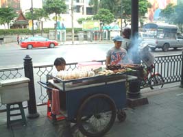 キムを演奏をしながらタイ式スマイルです。 タイの街はエネルギッシュな屋台であふれいます。