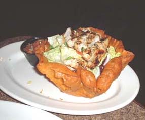 それとチキンが入ったサラダ。ビールは自家醸造のようで大きな銅のタンクがあります。