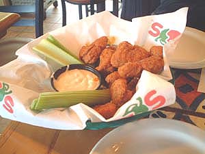 やっぱり「バッファーローチキン!」を頼まねば、、ってんで、またしても油地獄ですがピリ辛のを頼みました。